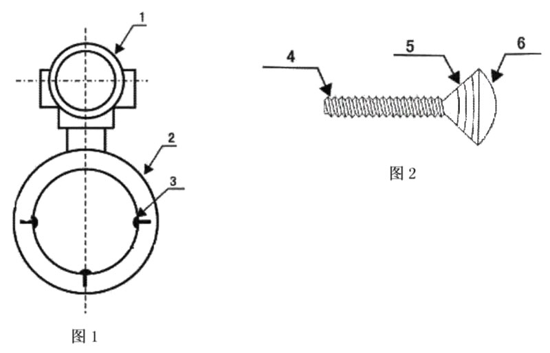 在實(shí)施例中,陀螺式電極智能電磁流量計(jì)包含傳感器筒體2、主機(jī)1、電極3,主機(jī)設(shè)置在傳感器筒體上,傳感器為筒狀結(jié)構(gòu),電極為陀螺式結(jié)構(gòu),并有電極桿4電極桿上設(shè)有螺紋,電極布置在傳感器筒體內(nèi),電極桿與傳感器筒體之間通過螺紋連接。電極包含電極杄4、電極托臺(tái)5、接液面6,電極托臺(tái)與接液面一起構(gòu)成陀螺結(jié)構(gòu),電極托臺(tái)與電極桿連為一體;接液面是電極與被測液體接觸面。電極桿上的螺紋旋進(jìn)傳感器筒體內(nèi)的內(nèi)襯材料里,電極桿的長度盡量長一些。電極托臺(tái)的形狀為錐型,電極托臺(tái)外緣與電極桿中心線成45°角,與接液面一起構(gòu)成陀螺結(jié)構(gòu)。