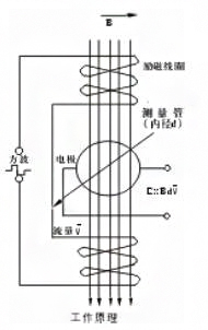 分體型電磁流量計的轉(zhuǎn)換器可遠離現(xiàn)場惡劣環(huán)境,電子部件檢查、調(diào)整和參數(shù)設(shè)定就比較方分體式電磁流量計測量原理是基于法拉第電磁感應定律。流量計的測量管是一內(nèi)襯絕緣材料非導磁合金短管。兩只電極沿管徑方向穿通壁固定在測量管上。其電極頭與襯里內(nèi)表面基本齊平。勵磁線圈由雙向方波脈沖功磁時,將在與測量管軸線垂直的方向上產(chǎn)生一磁通量密度為B的工作磁場,此時,如果具有一定電導率的液體流經(jīng)測量管,將切磁力線感應出電動勢E。電動勢E正比于磁通量密度B,測量管內(nèi)徑d與平均流速V的乘積。電動勢E(流量信號)由電極檢出并通過電纜送至轉(zhuǎn)換器。轉(zhuǎn)換器將流量信號放大處理后,可顯示流體流量,并能輸出脈沖,摸擬電流等信號,用于流量的控制和調(diào)節(jié).