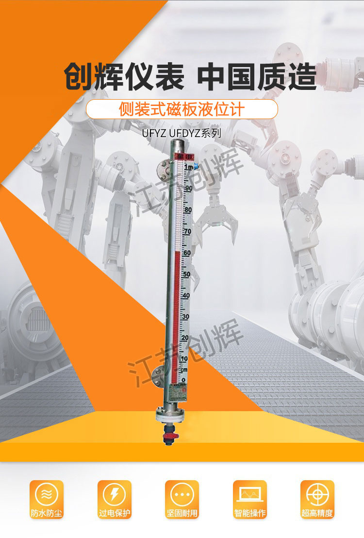 遠(yuǎn)傳磁翻板液位計(jì)是基本型與遠(yuǎn)傳變送器兩部分的組合即可實(shí)現(xiàn)信號(hào)遠(yuǎn)傳、液位報(bào)警及控制功能。XY-UHZ型磁翻板液位計(jì)的直觀、醒目、性價(jià)比高、耐溫、耐壓、防腐、防爆的特點(diǎn),使其**應(yīng)用于電力、石油、化工、冶金、環(huán)保等行業(yè)生產(chǎn)過程中的液位測量及自動(dòng)化控制。