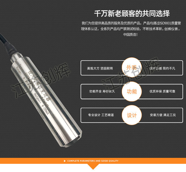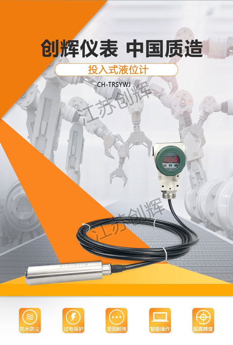 CH-TRS投入式液位變送器是基于所測液體靜壓與該液體高度成正比的原理,采用擴(kuò)散硅或陶瓷敏感元件的壓阻效應(yīng),將靜壓轉(zhuǎn)成電信號。經(jīng)過溫度補(bǔ)償和線性校正,轉(zhuǎn)換成4-20mADC標(biāo)準(zhǔn)電流信號輸出。 投入式液位變送器的傳感器部分可直接投入到液體中,變送器部分可用法蘭或支架固定,安裝使用極為方便。買投入式液位變送器***江蘇創(chuàng)輝,**從事投入式液位變送器儀表的開發(fā)和應(yīng)用.產(chǎn)品安全可靠,耐高溫高壓,技術(shù)**. 歡迎來電咨詢投入式液位變送器價(jià)格!