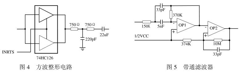 HART MODEM采用Smar公司的HT2012,它是符合Bell202通訊標準的半雙工調(diào)制解調(diào)器,實現(xiàn)HART協(xié)議規(guī)定的數(shù)字通訊的編碼和譯碼,采用16腳DIP和28腳PLCC封裝附屬電路主要實現(xiàn)信號的濾波整形,由帶通濾波器和方波整形電路組成(見圖4和圖5)。